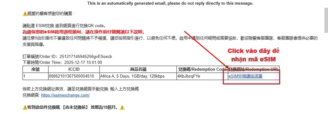 Sau khi mua eSim, chúng tôi sẽ gửi cho bạn mail để lấy mã QR và kích hoạt eSIM.